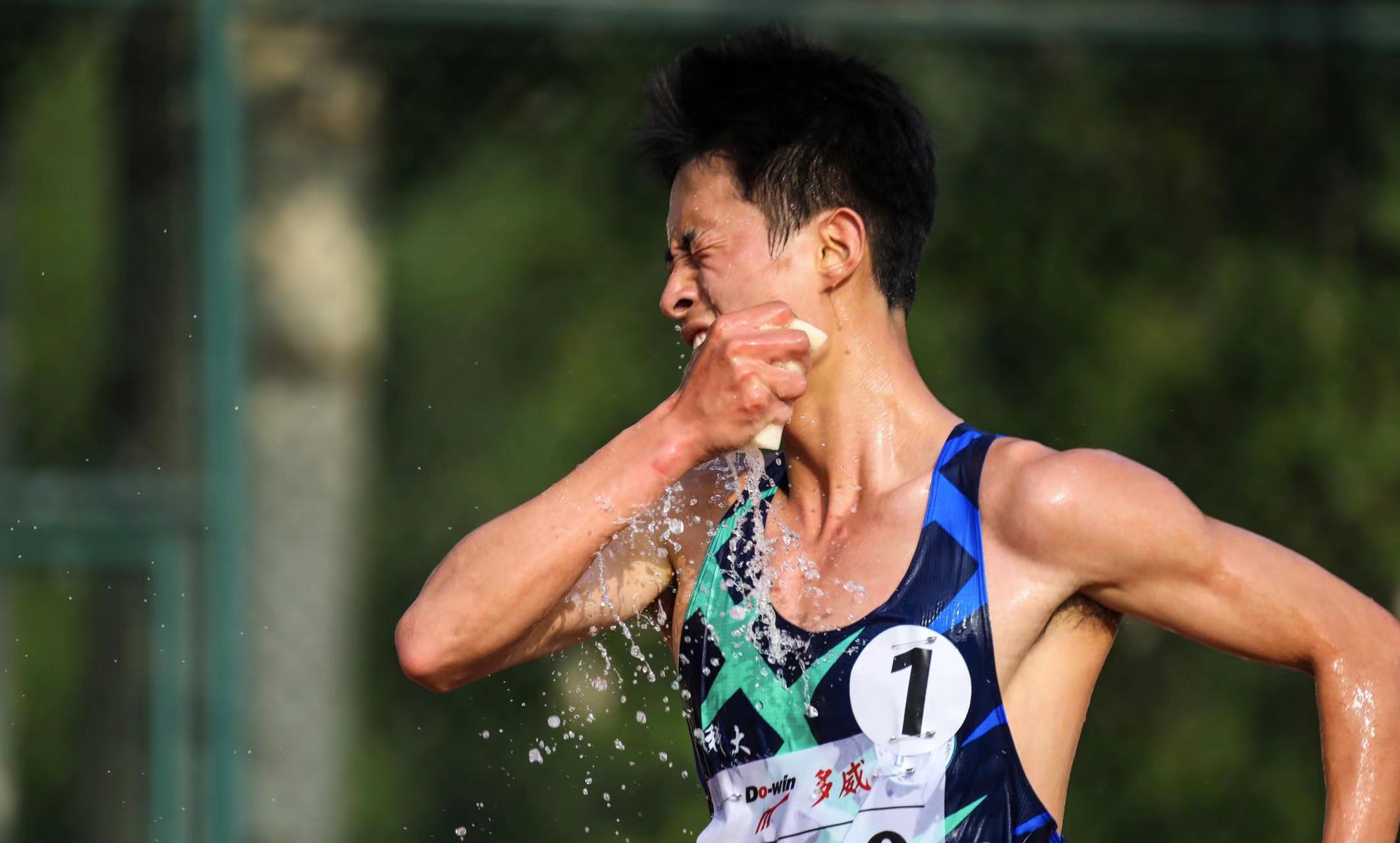 运动员张悦在董官清教练的指导下,获得男子甲组3000米障碍的冠军,下图体育部主任张孔军为其颁奖。