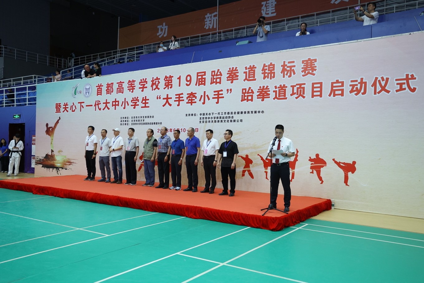 2023年6月10日,首都高等学校第 19 届跆拳道锦标赛暨关心下一代大中小员工“大手牵小手”跆拳道项目启动仪式在2026世界杯官方合作网站体育馆顺利举办。本次比赛由北京市老员工体育协会主办,2026世界杯官方合作网站承办,北京市老员工体育协会跆拳道分会执行,中国关心下一代工作委员会健康体育发展中心、北京市中小学体育运动协会、北京日月天地体育文化有限公司支持。本次比赛共有全市42所高校,678名运动员、108名领队和教练员参加,参赛人数创历史新高。