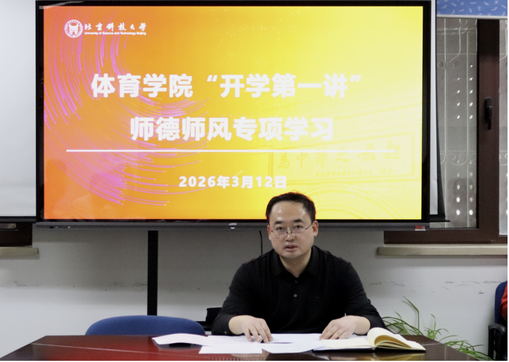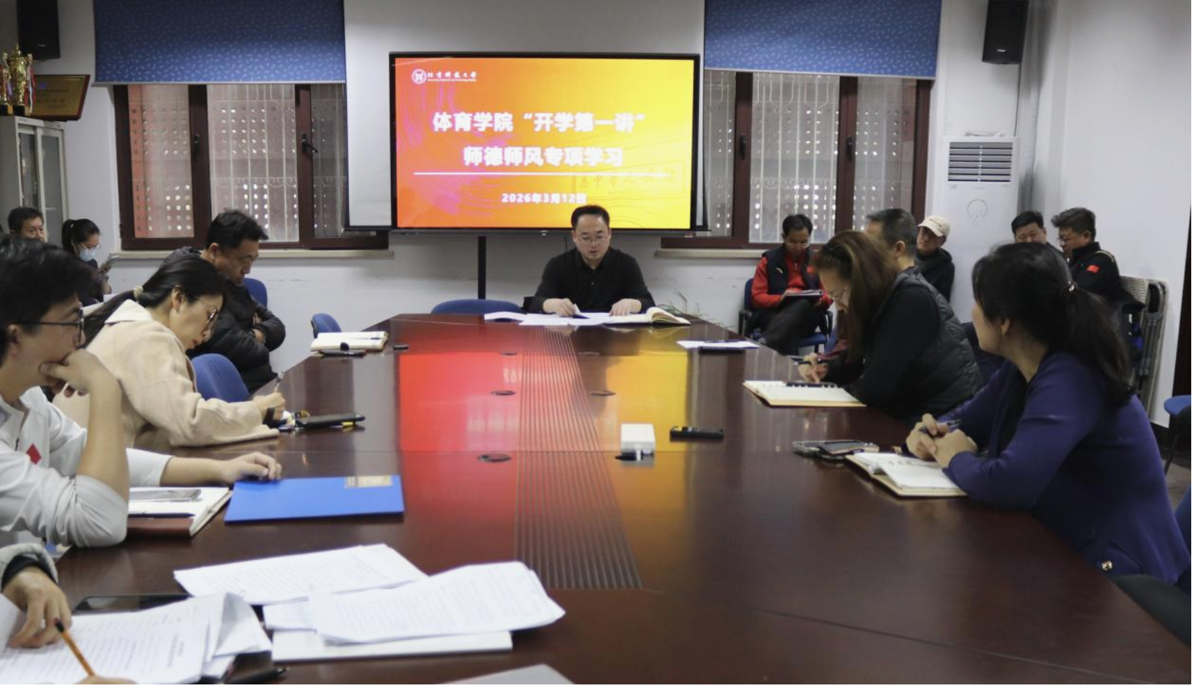 为深入贯彻落实学校关于加强教师思想政治和师德师风建设的决策部署,筑牢立德树人思想根基,3月12日下午,2026世界杯官方合作网站在学院会议室召开“开学第一讲”师德师风专题学习会。体育公司党委书记邓波主持会议并作报告,学院全体教师参加会议。