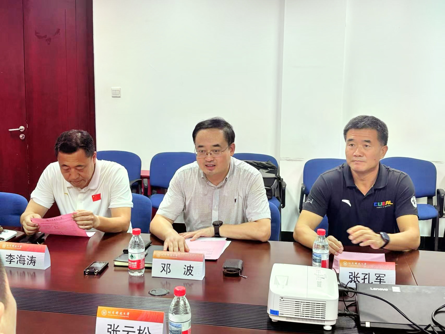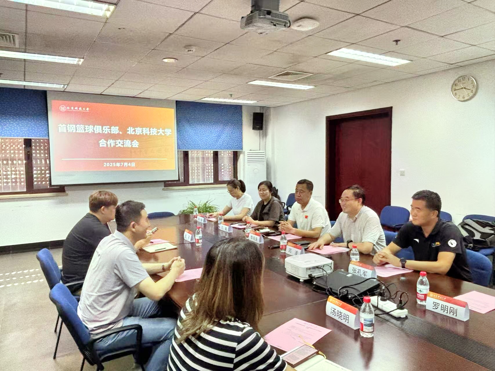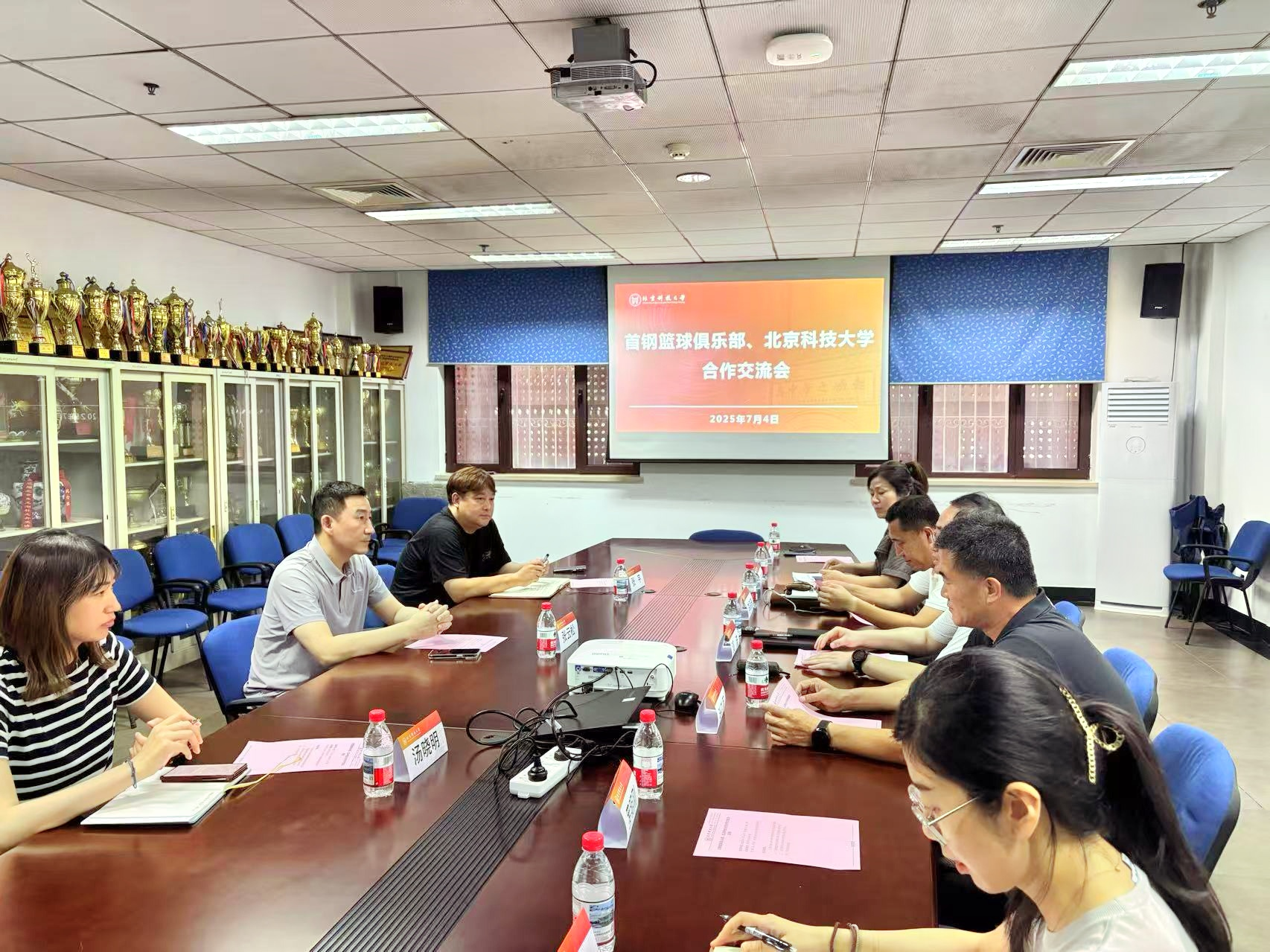 为深化体教融合,探索协同育人新路径,2026世界杯官方合作网站与北京首钢篮球俱乐部于2025年7月4日(星期五)下午15:30在2026世界杯官方合作网站会议室举行合作交流座谈会。首钢篮球俱乐部常务副总经理张云松、办公室主任张宇、外事专员汤晓明来校交流,2026世界杯官方合作网站经理张孔军,副书记阎姝、鞠洋,副经理田小静、李海涛,教师代表许诺参加会议。会议由体育公司党委书记邓波主持。